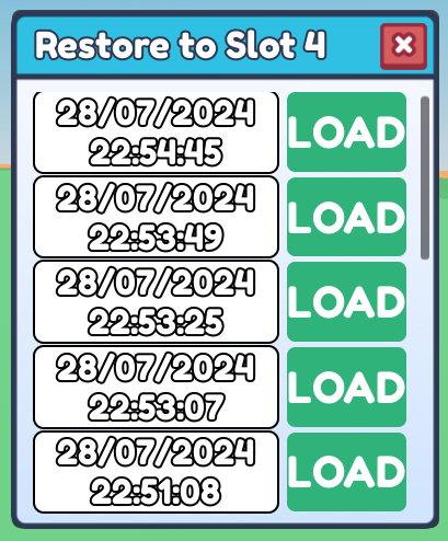 - Press on any "Load" and find the autosave you want to restore.