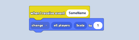 When i Receive event --and put what you want to happen when someone presses the button. In this case we want to change the players scale so we use achange all players scale to 1.
