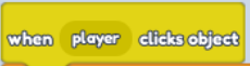 - Just below, build another Code Block. Find "When Player Clicks Object" in "Events" (Yellow Button)