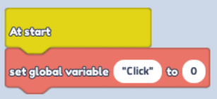 Lastly add "Set Global Variable" Block, change text to "Click" and Value to 1