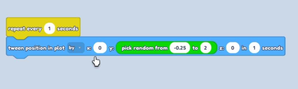 - Drag the "Pick random" icon into the Y: space