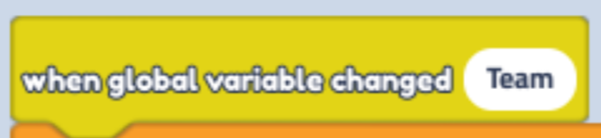 Find "When global variable changed" in "Events" (Yellow Button). Change text to "Team"