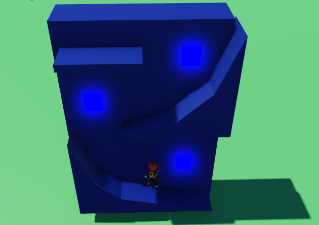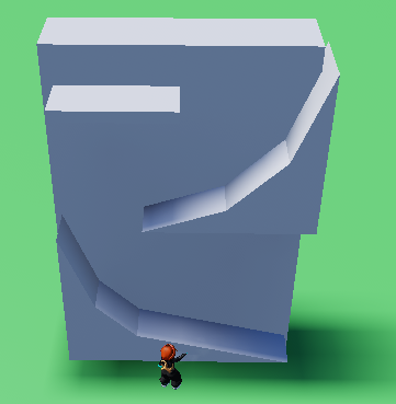 Start with your wall and add whatever stepping blocks you want. In this example, they are round ramps made from wedges