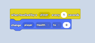 when touched by a playerblock from Events followed by achange player healthblock from Player