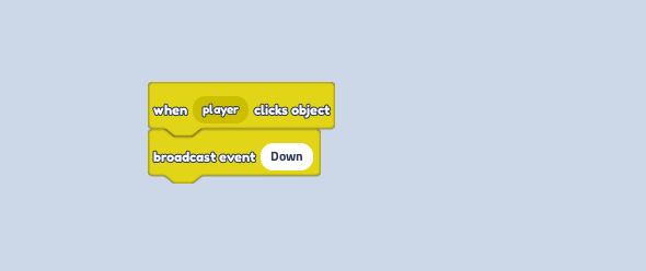 at startblock and abroadcast eventblock from Events. In the key, type your trigger word, in this example its "Down".