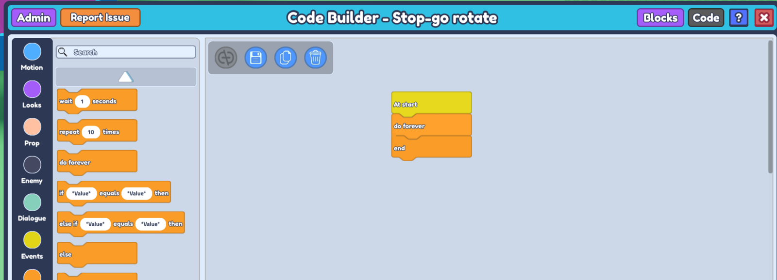 11. Save your code, and when you press 'Play my game' you will see the block flipping over, with the player falling through when it's on the 'danger' side!