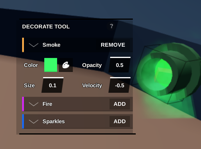 - Select the the decorate tool and click on an object to add your effect to