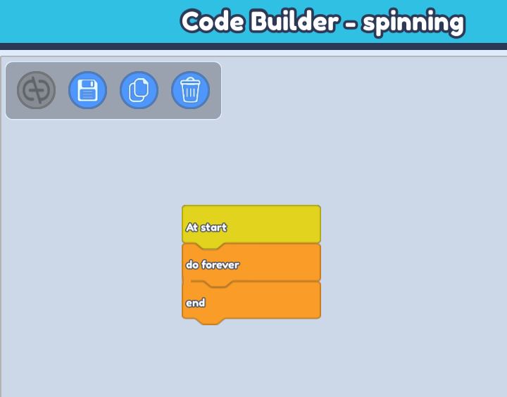 At startblock to play the swings as soon as the game plays. Then go to 'Control' and grab thedo foreverblock (which automatically comes with an 'end' block), and place it belowAt start.