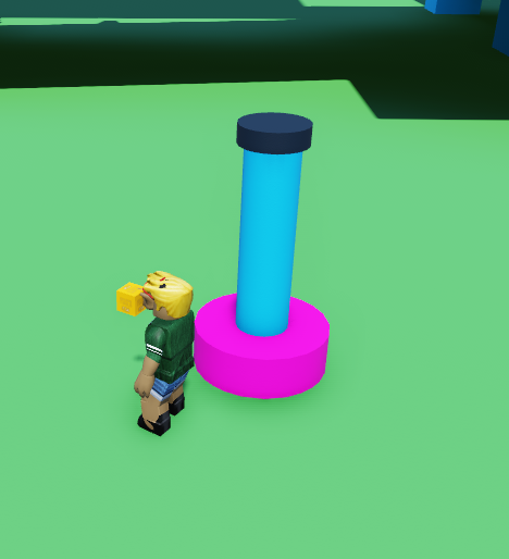 - Now let's make the circles that will rotate and knock players away. To do this, grab a cylinder and flatten it and rotate it to face the player, and have another cylinder connecting it to the pole. Place that on one side of the pole.