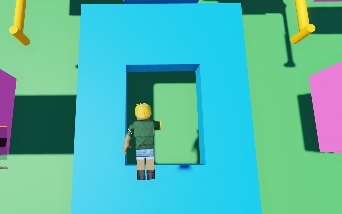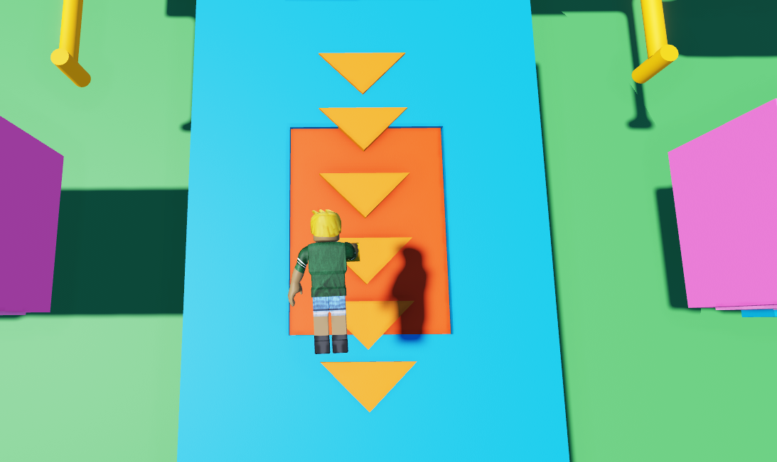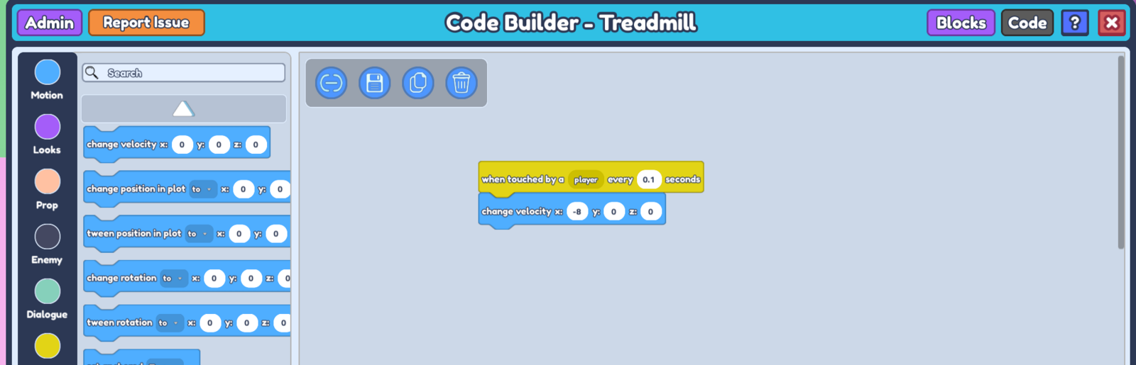 - Save your code, and when you press 'Play', you will see your treadmill animating and your player will move downwards when on it.