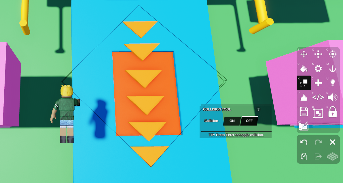 - Select your shapes and merge them into one object. Then select that object and set its collidable off.