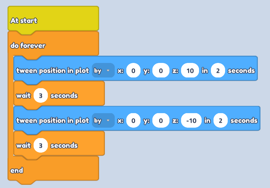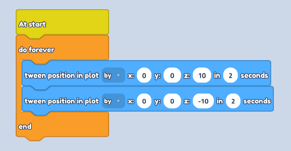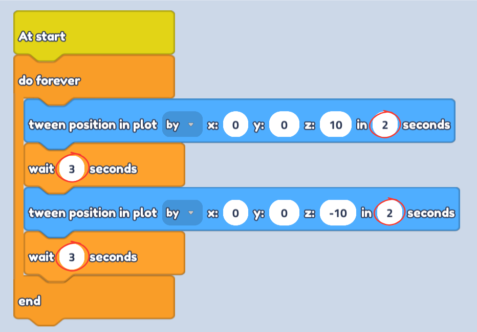 - Make sure the seconds in the wait block are slightly higher than the seconds in the tween block. This gives a small delay between movement and makes sure our object doesn't try to move in both directions at the same time!