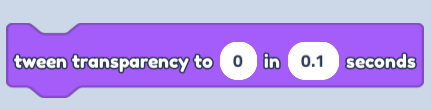 - Find "Tween transparency..." in Looks (Purple Button)