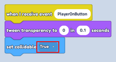 - Find "Set collidable" in Motion (Blue button)